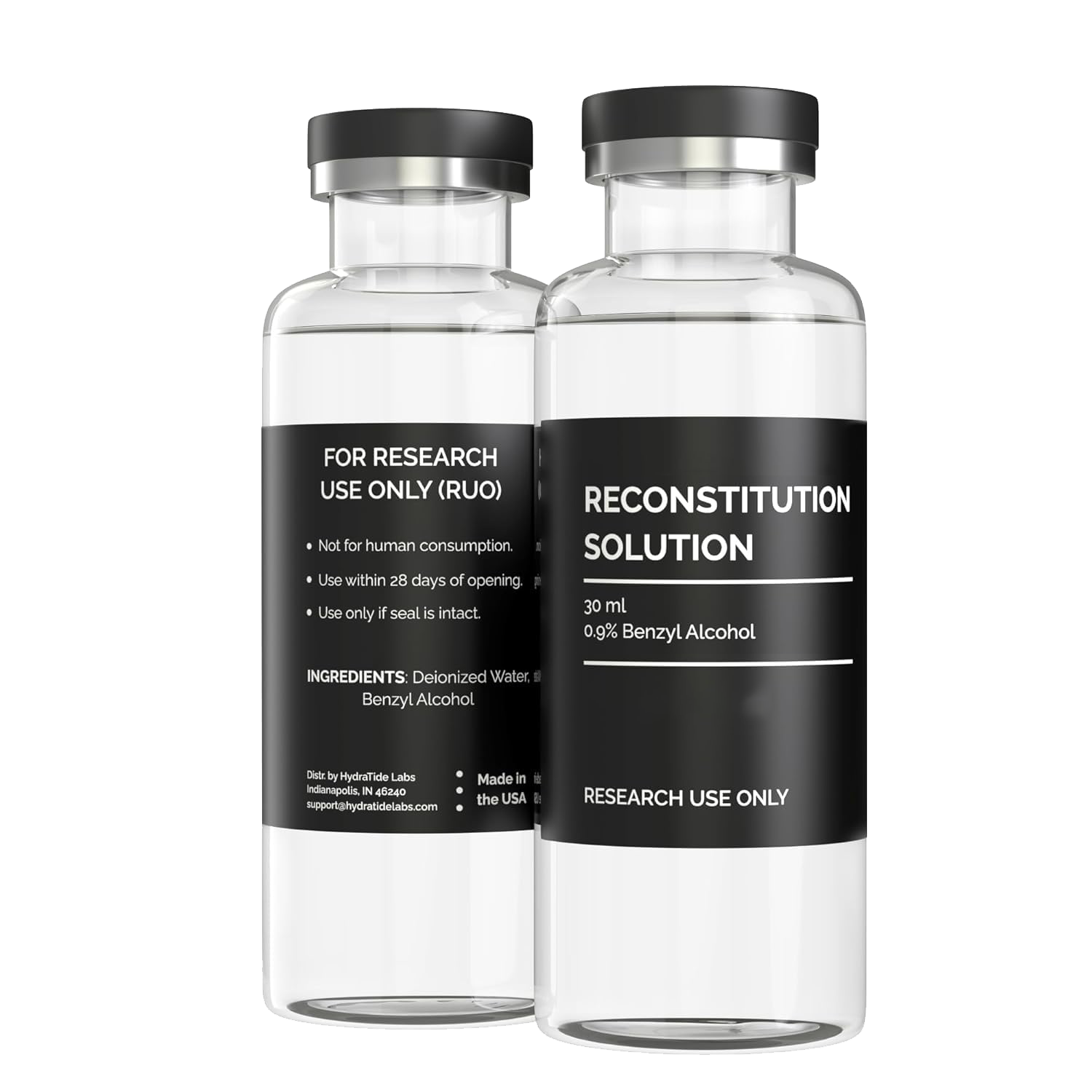 - Secure Glass Vials – Each 30 mL clear glass vial containing the reconstitution solution is durably made, tightly capped, and carefully sealed to help prevent leaks and maintain integrity during storage and handling.